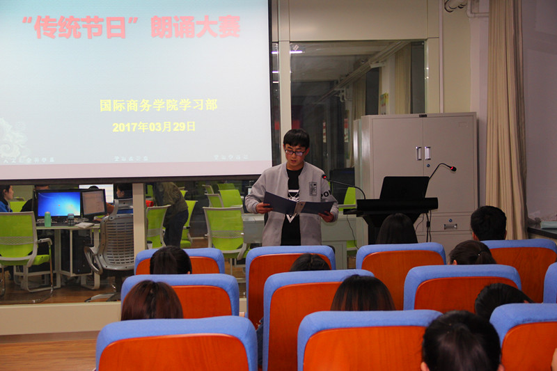 3月29日,bv伟德国际1946在主教学楼老员工创新创业实训中心成功举办“我们的传统节日”朗诵比赛决赛,此次参赛的选手是在各班初赛的基础上选拔出来的。