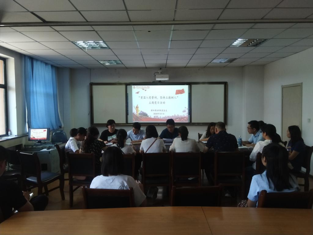 7月1日下午,bv伟德国际1946教工党支部在主教学楼二楼举办“重温入党誓词,坚持立德树人”主题党日活动,公司全体教工党员参加.