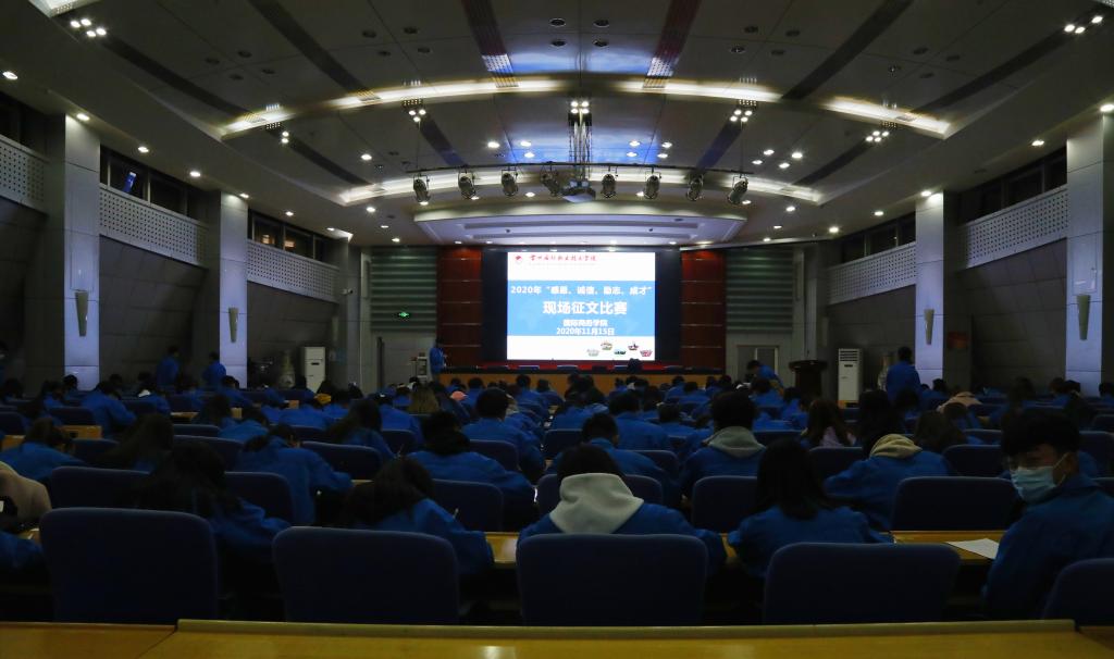 11月15日晚,bv伟德国际1946在报告厅举办“感恩、诚信、励志、成才”征文比赛。2020年获资助和受表彰近200名员工参加比赛。