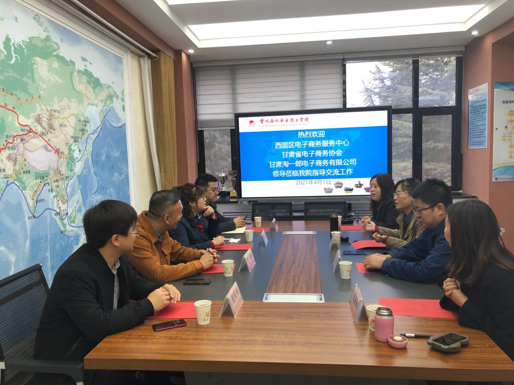 4月1日上午,西固区电子商务服务中心主任廖娟娟、甘肃省电子商务协会及甘肃省淘一郎电子商务有限公司副总经理丁涛一行四人来bv伟德国际1946考察交流。