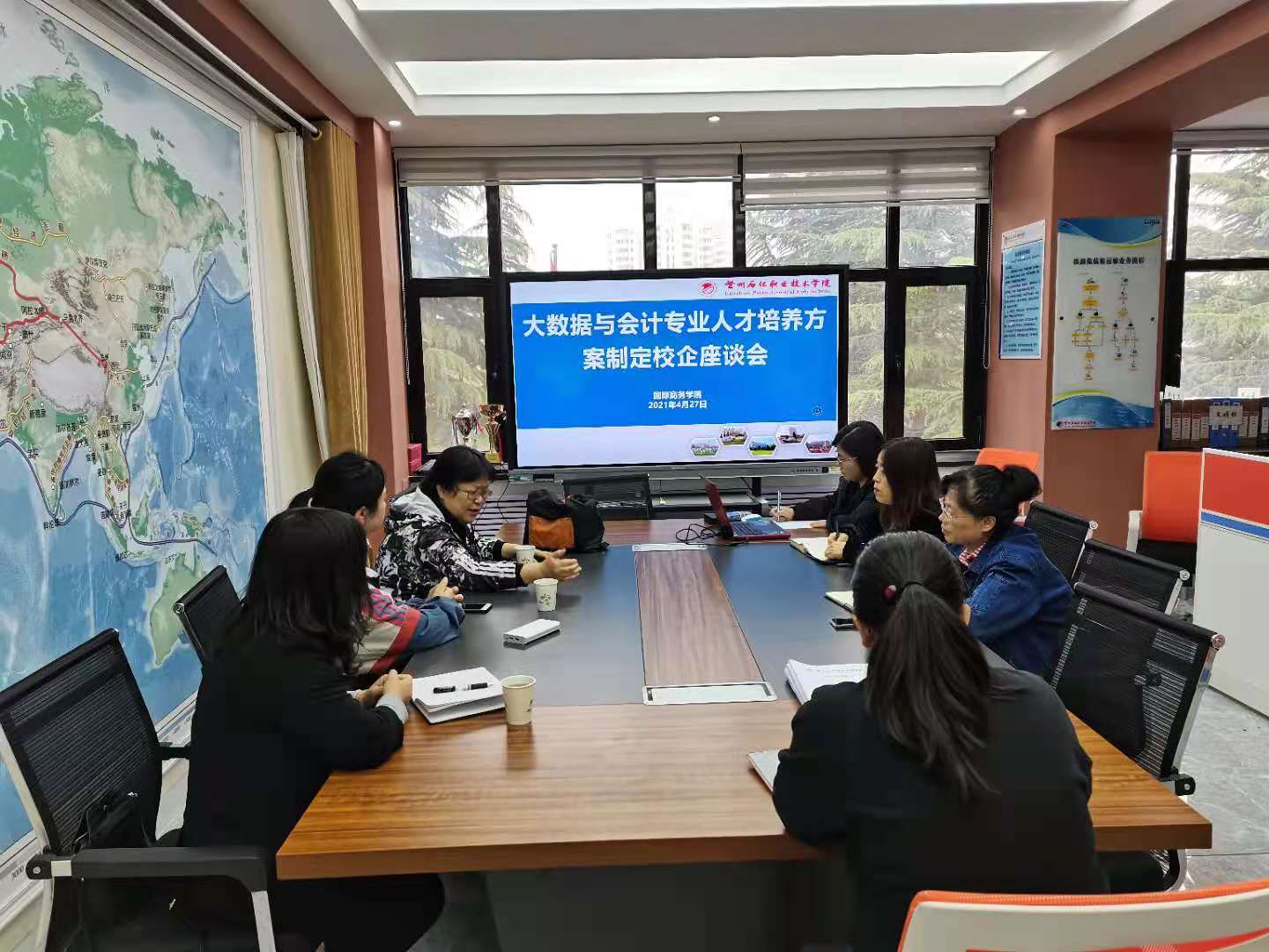 4月27日上午,bv伟德国际1946在东主教海铁物流会议室召开校企合作人才培养方案制定座谈会。bv伟德国际1946负责人及会计教研室老师与正保远程教育的赵欣专家团队等14人参加会议。