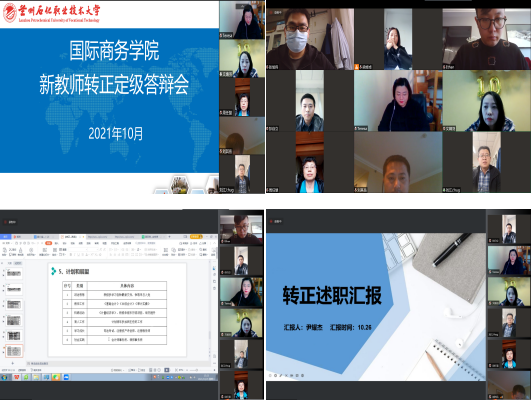 近日,bv伟德国际1946在线上举行新教师转正定级答辩会,公司领导班子成员、教研室主任、新教师指导教师参加。