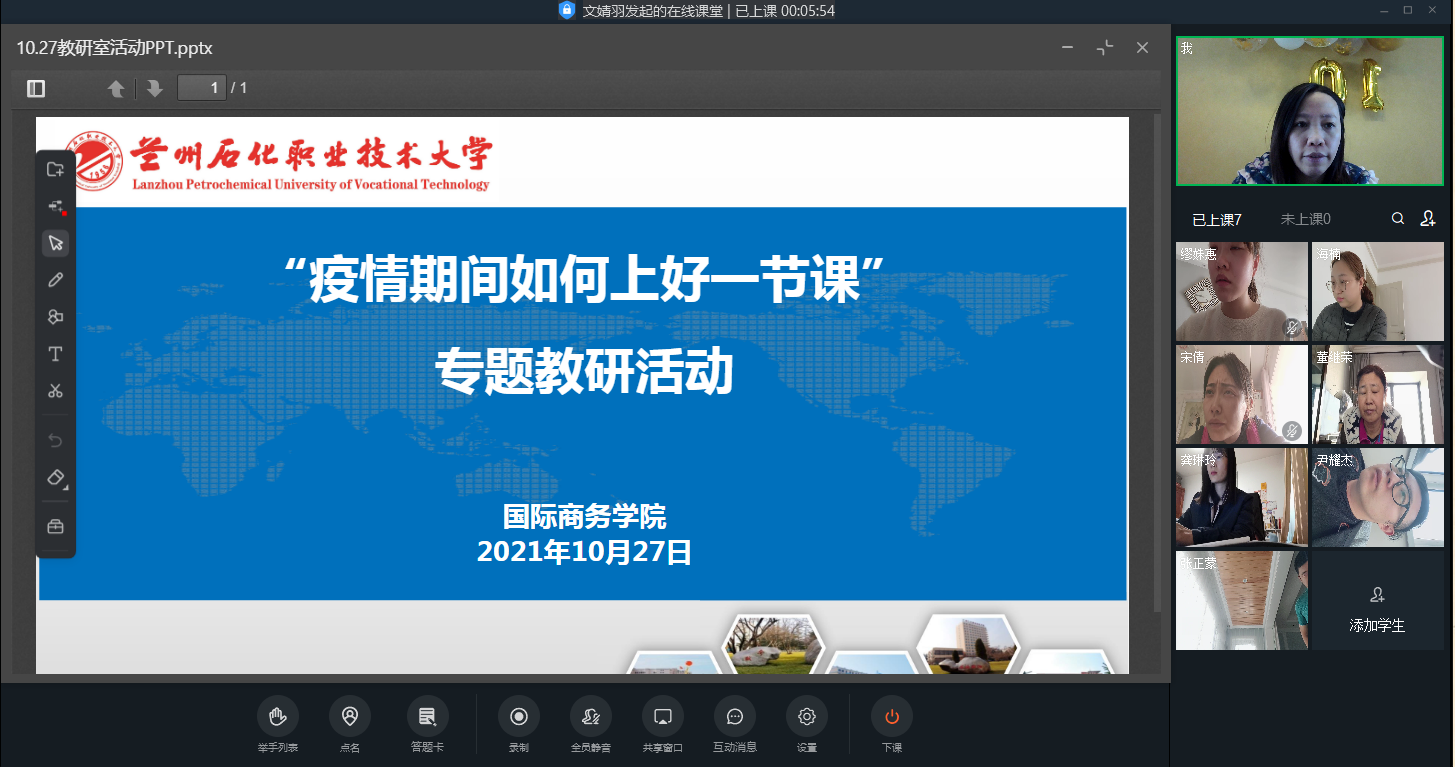 自10月份疫情爆发以来,bv伟德国际1946迅速响应、全面部署、立即行动,在公司的统一领导下,切实把防控疫情作为当前最重要的工作,同时抓好线上教学工作也是当前的关键。经过近一个半小时的线上研讨,大家认为要把疫情防控与课程思政有机结合起来,让同学们切实做好疫情防控,同时能够专心学习专业知识。其次,要在线上教学中增加互动体验环节,使线上教学效果更好;第三,教学中多采用翻转式教学,部分内容让员工直播讲授、讨论和分析,以此加强学习主动性和积极性。