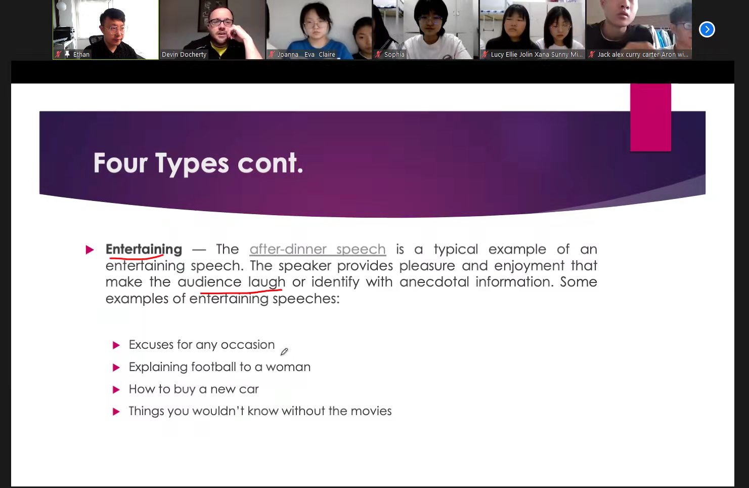 3月16日,中加合作办学项目首次线上课在zoom平台顺利开展。课程由加方教师Devin和中方教师尹耀杰共同讲授。课堂中,两位老师配合默契,教学内容环环相扣。员工利用在线平台的功能积极与任课教师互动,课堂气氛轻松活泼。