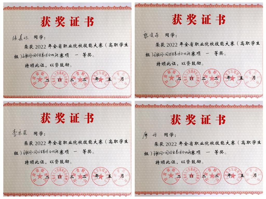 近日,甘肃省职业院校技能大赛高职组“互联网+国际贸易综合技能”赛项完赛,来自五所公司共32名员工参加了本项比赛,bv伟德国际1946电子商务211班张嘉欣、黎峻菲、市场营销201班李宗荣、工商管理211班廖丹组成的团队,经过长达9个小时的角逐,夺得第一名的好成绩。
