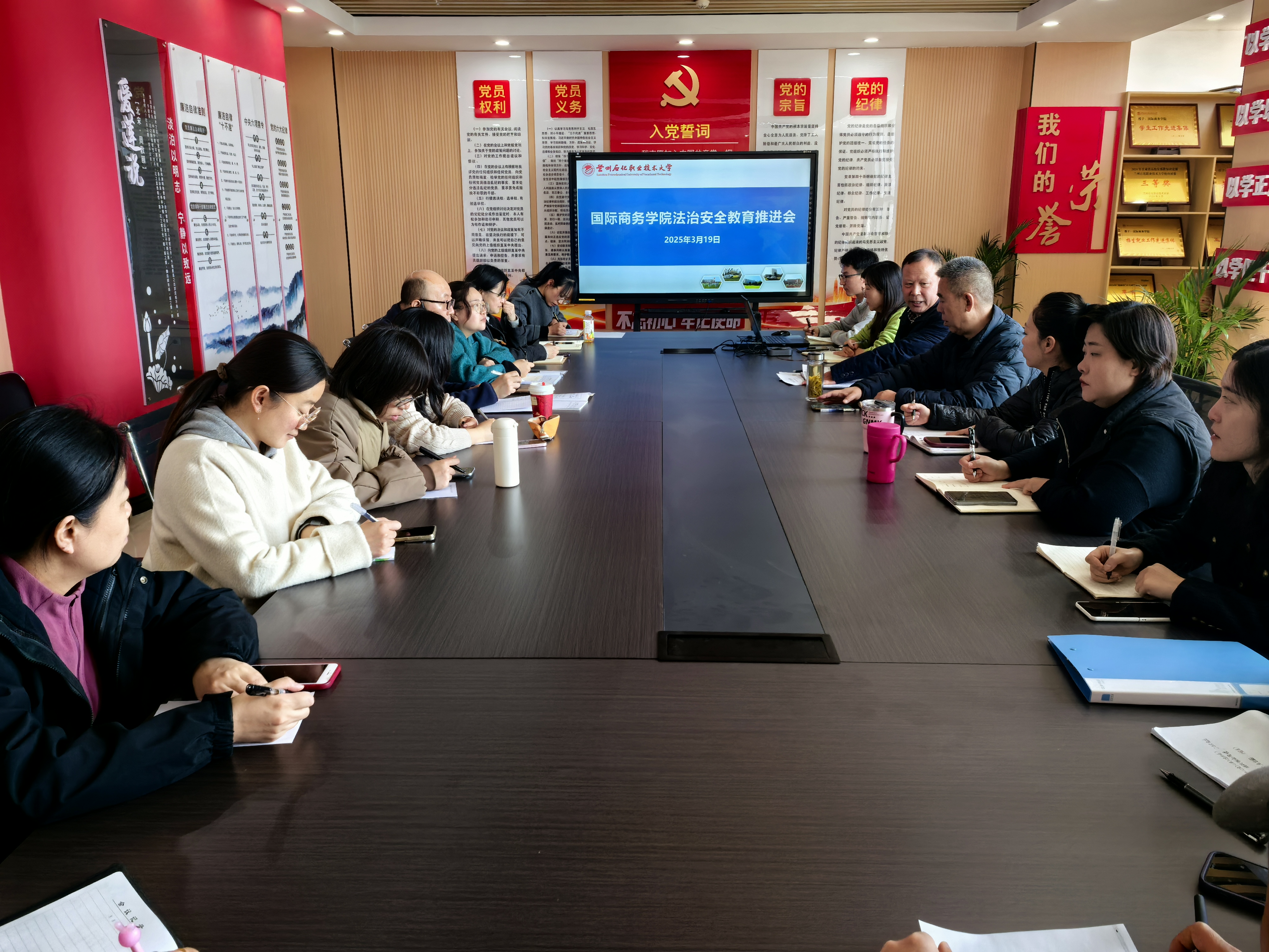 法治安全教育工作推进会上,张文和书记强调了法治安全教育工作的重要性,指出要始终深入贯彻落实公司有关安全工作的文件精神,将法治安全教育贯穿于员工教育管理的全过程,切实维护校园安全稳定。公司副书记刘天英指出在员工安全工作上,要求全体辅导员、班主任全面加强安全教育,内容涵盖交通安全、消防安全、网络安全、食品安全等方面,通过主题班会等形式提高员工的安全防范能力和自我保护意识。