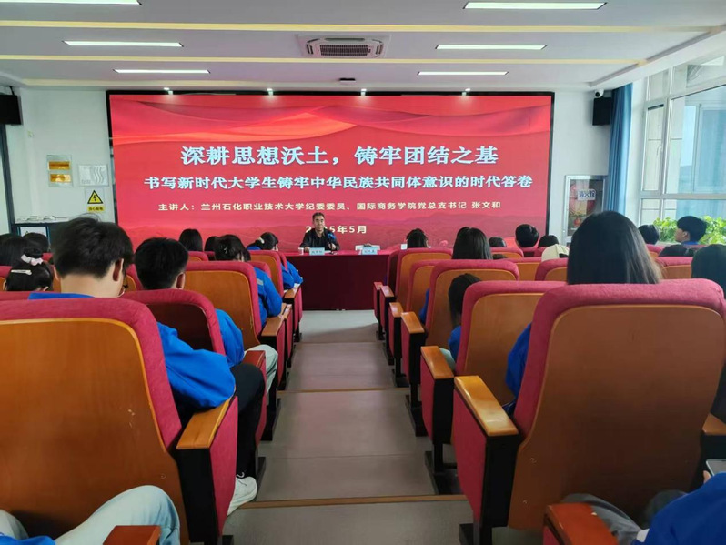 5月16日,公司党总支书记张文和在悦技楼以“深耕思想沃土,铸牢团结之基,书写新时代铸牢中华民族共同体意识的时代答卷”为题,为公司师生讲授专题思政课,推动公司民族团结教育走深走实。